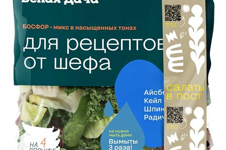 Смесь из свежих овощей Белая дача Босфор 130г – салатный микс, который поможет вам питаться правильно и сбалансированно, но при этом даст возможность сэкономить время. В его состав вошли: сочный айсберг, терпкий кейл, нежный шпинат и яркий радиччо. Ингредиенты уже трижды промыты в ключевой воде, просушены и нарезаны. Микс отлично подходит как для легких будничных, так и для изысканных праздничных салатов. Гармонично сочетается с томатами черри, оливками, цитрусовыми фруктами и ломтиками твердого сыра. Высококачественная упаковка позволяет сохранить свежесть и вкусовые свойства в пределах всего срока годности. Салатные смеси ТМ «Белая Дача» – это сочетание отменного вкуса, пользы и натуральности.