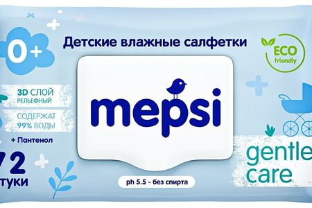 Салфетки влажные Mepsi Gentle Care с клапаном детские 72шт доставка