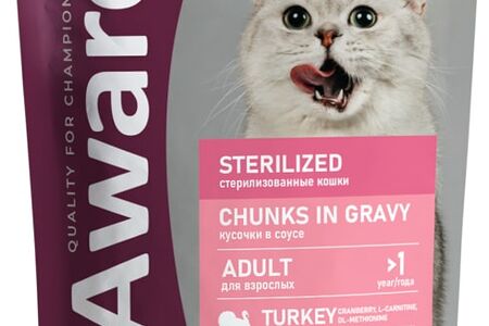 Влажный корм для кошек Award Sterilized для стерилизованных кусочки в соусе с индейкой 85г доставка