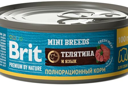 Влажный корм для собак Brit Premium by Nature с телятиной и языком для мелких пород 100г – полнорационное влажное питание премиум-класса. Предназначено для взрослых животных (от 1 года до 6 лет). Производится на основе натуральных ингредиентов без использования вредных химических добавок. Свежая телятина, входящая в состав, придает корму приятный вкус и соблазнительный аромат. Рецептура дополнительно обогащена витаминами, минералами и пребиотиками, что очень важно для поддержания здоровья и полноценной физической активности вашего питомца. Рекомендация по кормлению: суточная норма 40-50г на 1кг веса животного. Оптимальный размер порции позволяет употребить корм в 1 прием пищи, избежав длительного хранения вскрытой упаковки. Железная баночка оснащена удобным ключом для открывания.