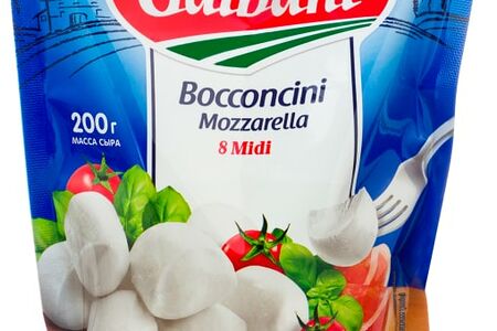Сыр Galbani Моцарелла Боккончини 45% 8шт*25г - это классический молодой сыр родом из региона Кампания, основа традиционной итальянской кухни. Он представляет собой шарики среднего размера (midi) в рассоле (8 штук в упаковке). Сыр нежный, с чуть пружинящей слоистой текстурой, с легким, практически пресным вкусом. Моцареллу такой формы лучше всего использовать для салатов или порционных закусок (например, для Капрезе с помидорами Черри на шпажках). Как и другие формы, эта тоже превосходно плавится, поэтому подходит как для холодных, так и для горячих блюд.