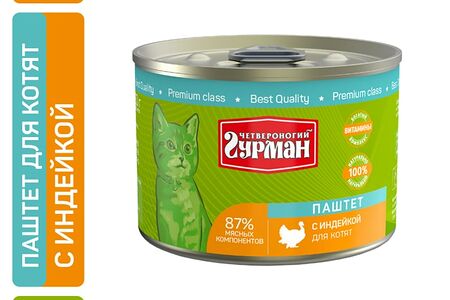 "Четвероногий гурман Паштет" для котят — это влажный корм премиум-класса с нежной консистенцией. В его составе 87% мясных компонентов исключительно высшего качества. Рецептуры корма богаты ингредиентами — мясо и всевозможные субпродукты обеспечивают лакомый вкус, притягательный аромат и высокую питательность. Корм полностью натуральный — в его составе нет искусственных красителей, ароматизаторов, усилителей вкуса и ГМО. Подходит для котят всех пород с 6 месяцев.