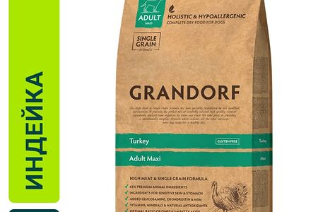 Сухой корм для собак Grandorf Adult Maxi для крупных пород с индейкой и рисом 10кг доставка