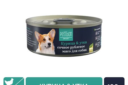 Влажный корм для собак Petibon Smart Рубленое мясо с курицей и уткой 100г доставка