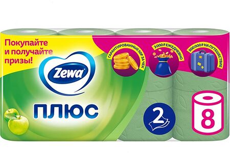 Туалетная бумага Zewa Плюс Аромат яблока 8 рулонов 2 слоя - это мягкая и в то же время прочная туалетная бумага с приятным яблочным ароматом, которая подходит всем членам семьи. Зеленые листы с тиснением легко отрываются по линии перфорации, размер каждого листа 9.5*12.5см, всего в рулоне 184 листа, общая длина 23м. Одобрена российскими дерматологами. В упаковке - 8 рулонов.