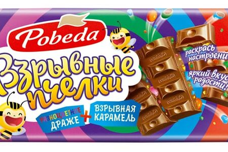 Шоколад Победа вкуса Взрывные пчелки мини-драже и взрывная карамель 80г доставка