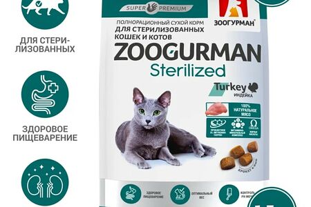 Сухой корм для взрослых стерилизованных Зоогурман Sterilized Turkey Индейка 1.5кг доставка