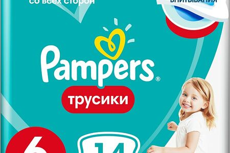 Подгузники трусики Pampers 6 размер / 15+ кг с мягким пояском 14шт доставка