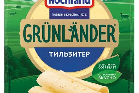 Полутвердый сыр Грюнландер от Hochland Тильзитер это естественно вкусный полутвердый сыр с мягким молочным вкусом. Подойдет для приготовления завтраков, закусок, холодных и горячих блюд и сэндвичей. Сыр Gr nl nder изготовлен без добавления консервантов по технологии естественного созревания, поэтому сохраняет вкус натурального молока, из которого его произвели. Естественно созревает естественно вкусно!