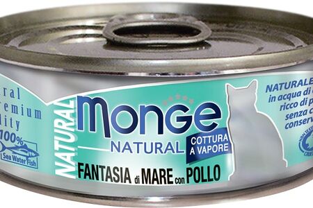 Влажный корм для кошек Monge Cat Natural Морепродукты с курицей 80г доставка