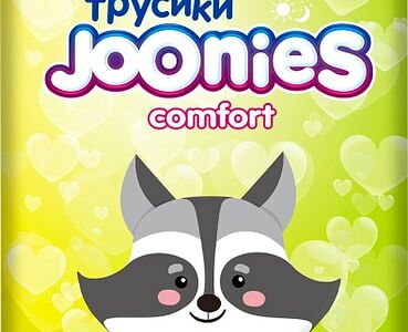 Подгузники-трусики Joonies Comfort размер M 6-11кг 54шт – комфортные ультратонкие подгузники в виде трусиков. Изготовлены из очень приятных на ощупь дышащих материалов без добавления отдушек, парабенов и хлора. Внутренняя поверхность изделий имеет особое 3D строение, что позволяет уменьшить площадь соприкосновения подгузника с нежной детской кожей и снизить риск возникновения опрелостей. Широкий эластичный поясок плотно прилегает к телу малыша, но не доставляет дискомфорта, а оборочки вокруг ножек обеспечивают дополнительную защиту от протеканий. Индикатор наполнения вовремя подскажет о необходимости замены трусиков, а липкая лента поможет гигиенично их утилизировать. Изделия имеют симпатичный дизайн – на каждом размере изображен свой милый персонаж! В упаковке 54 штуки.