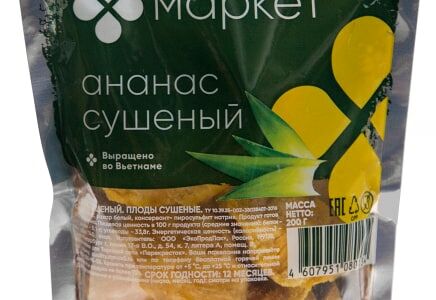 Сведения о составе: Ананас, сахар белый, консервант - пиросульфит натрияПищевая ценность: 140,0.9,0.1,33.8Условия хранения: 25,5Срок годности в днях: 365Страна изготовления: РоссияСведения об упаковке: Дой-пак