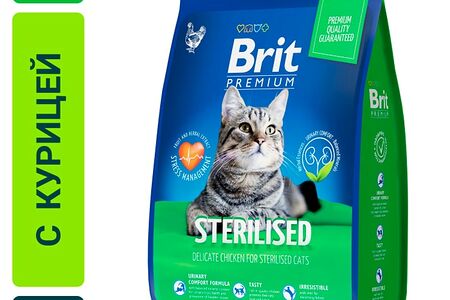 Сухой корм для кошек Brit Premium с курицей 2кг - полнорационный корм премиум-класса для взрослых стерилизованных кошек и котов, который поможет сохранить здоровье и активность вашего питомца. Сбалансированный состав содержит все витамины и минералы, необходимые для ежедневного здорового питания. За счет куриного мяса в составе корм имеет притягательный аромат и вкус, который не оставит равнодушным даже самых привередливых питомцев. Рекомендации по кормлению: корм следует давать сухим или увлажненным теплой водой. У животного всегда должен быть доступ к миске со свежей водой.