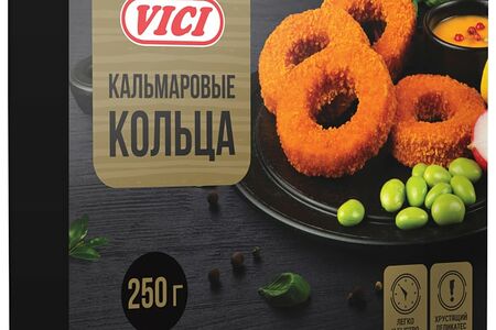 Сведения о составе: Фарш из кальмара гигантского (Dosidicus gigas); мука пшеничная; вода, масло соевое, растительные волокна и белок (горох, картофель), загуститель: альгинат натрия, уплотнитель: сульфат кальция, стабилизаторы: пирофосфаты, полифосфаты, эмульгатор: Е470, белок молочный, мальтодекстрин, крахмал пшеничный, соль, ароматизатор, усилители вкуса и аромата: Е621, Е629, Е631, специи, сахар, разрыхлитель: карбонаты аммония, перец белый молотый. Произведено из мороженого сырьяПищевая ценность: 206,11.61,9.6,18.4Условия хранения: -18,-18Срок годности в днях: 730Страна изготовления: РоссияСведения об упаковке: Картонная коробкаПроизводитель: Вичюнай Русь