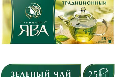 Чай зеленый Принцесса Ява Традиционный 25 пак превосходный купаж отборных сортов зеленого китайского чая. Готовый настой красивого светло-янтарного цвета порадует вас характерным терпким вкусом с травянисто-сладковатыми нотками и тонким, но хорошо выраженным ароматом. Зеленый чай это не просто напиток, утоляющий жажду. В свежезаваренном виде он обладает поистине целебными свойствами: обогащает организм антиоксидантами, тонизирует, укрепляет сосуды, стимулирует мозговую активность, повышает иммунитет, способствует нормализации давления. Пакетированный чай выручит вас, где бы вы ни находились: дома, на работе, в дороге. При желании вы можете дополнить его кубиком тростникового сахара или ложечкой натурального меда. В упаковке 25 пакетиков для разовой заварки.