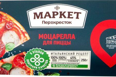 Сыр Маркет Перекресток Моцарелла для пиццы 45% 250г доставка