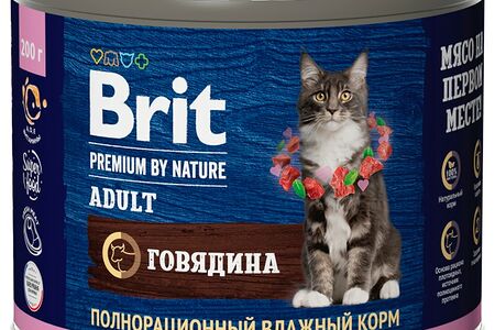 Влажный корм для кошек Brit Premium by Nature с мясом говядины 200г доставка