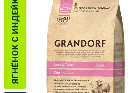 Сухой корм для котят Grandorf Kitten с ягненком с индейкой 400г доставка