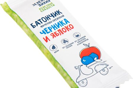 Батончик фруктово-ореховый Зеленая линия Черника и Яблоко 35г доставка