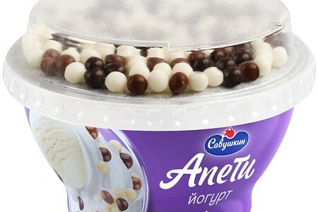 Йогурт Апети Пломбир с шариками в шоколаде 5% 105г доставка