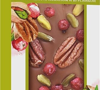 Шоколад Априори Молочный с фисташками пеканом и брусникой 100г доставка