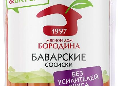 Сосиски Мясной дом Бородина Баварские 480г вкусные, сочные, натуральные колбасные изделия, изготовленные из отборной свинины и говядины с добавлением соли, молока и ароматных специй. Их можно отваривать, жарить на сковороде, готовить на гриле или решетке барбекю. Рекомендуется подавать в сочетании с картофельным пюре, салатом из свежих овощей и любимыми соусами. Вакуумная упаковка надежно сохраняет свежесть в течение всего срока годности. Мясной Дом Бородина крупное предприятие по производству мясной продукции, которое полностью отказалось от использования всех возможных заменителей мяса и усилителей вкуса. Колбасы, сосиски и деликатесы этой торговой марки отличаются высочайшим качеством и не содержат ГМО, глутамат натрия, сою и каррагинан, поэтому прекрасно подходят для всей семьи.