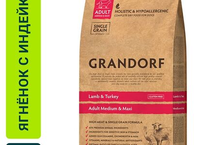 Сухой корм для собак Grandorf Adult Medium & Maxi для средних и крупных пород с ягненком и индейкой 10кг доставка