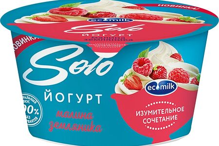 Йогурт Экомилк с малиной и землянкой 4.2% 130г доставка