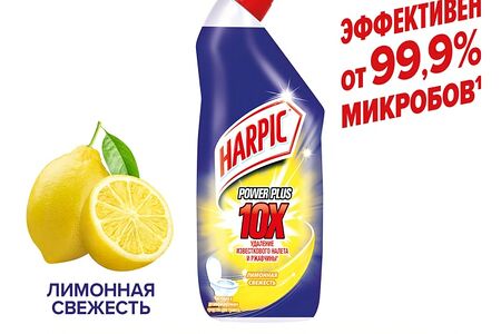Средство для чистки унитаза Harpic Power Plus Лимонная свежесть 450 мл – эффективный гель, который поможет вам в поддержании безупречной чистоты в туалете. Его густая жидкая формула обволакивает поверхность унитаза, обеспечивая глубокую очистку и качественную дезинфекцию. Благодаря кислотной формуле он быстро справляется с органическими загрязнениями, удаляет известковый налет и ржавчину, эффективно защищает от 99,9% микробов и устраняет неприятные запахи. Способ применения прост: нанесите средство на загрязненную область, оставьте на 10 минут, после чего слегка почистите щеткой и смойте. Горлышко флакона имеет изогнутую форму – это позволяет легко обработать труднодоступные участки под ободком унитаза.