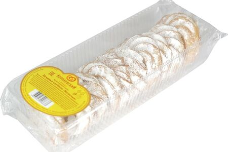 Сведения о составе: Мука пшеничная хлебопекарная высшего сорта, маргарин с м.д.ж. не менее 82 % (рафинированные дезодорированные масла в натуральном и модифицированном виде (пальмовое масло и его фракции, подсолнечное масло), вода, эмульгаторы (Е471, Е475), соль поваренная пищевая, ароматизатор «Сливки-молоко», краситель Е160а, регулятор кислотности лимонная кислота), сахар, вода питьевая, комплексная пищевая добавка (мука пшеничная, разрыхлители: гидрокарбонат натрия, дигидропирофосфат натрия; крахмал кукурузный, агент антислеживающий - карбонат кальция), разрыхлитель натрий двууглекислый, соль поваренная пищевая, регулятор кислотности лимонная кислотаПищевая ценность: 510,5.5,29,57Срок годности в днях: 90Страна изготовления: РоссияСведения об упаковке: Пластиковый контейнерПроизводитель: ООО Калининградхлеб