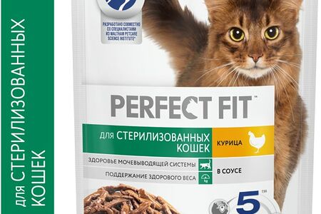 Влажный корм для стерилизованных кошек Perfect Fit полнорационный с курицей в соусе 75г доставка