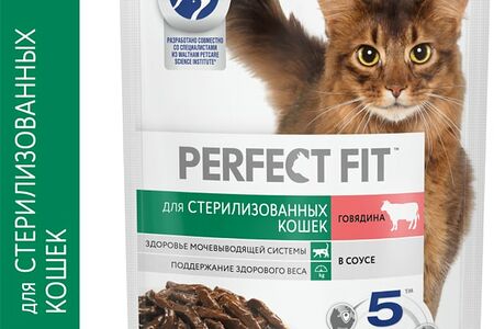 Влажный корм для стерилизованных кошек Perfect Fit полнорационный с говядиной в соусе 75г доставка