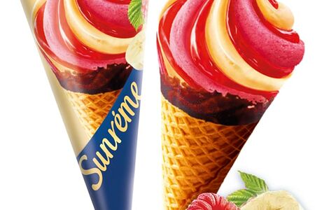 Мороженое Sunreme Малина-Банан в вафельном рожке 120мл доставка