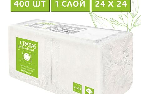 Салфетки бумажные Gratias Professional Белые 24*24см 1 слой 400шт доставка