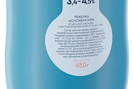 Ряженка Коломенский из цельного молока 3.4%-4.5% 450г доставка