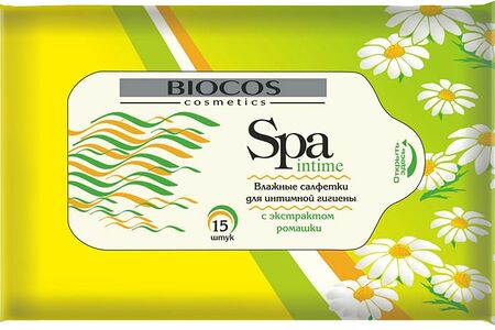 Салфетки влажные Biocos Spa intime c экстрактом ромашки 15шт доставка