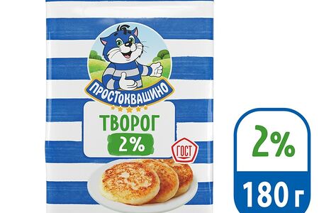 Творог Простоквашино 2% 180г - это традиционный кисломолочный продукт с нежной приятной консистенцией и умеренной кислинкой. Из него получаются хорошие сырники, запеканки, творожные муссы и легкие закуски. Он подходит для завтрака и легкого перекуса, прекрасно сочетается как со сладкими добавками, так и с зеленью, овощами и даже мясом. Вся продукция торговой марки имеет несколько гарантий качества: она готовится из 100% натурального молока с ближайших ферм, проверяется на наличие антибиотиков, не содержит консервантов и растительных жиров. Упакован в пергаментную бумагу и герметичный пакет.