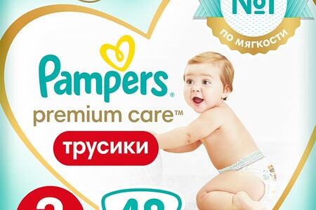Подгузники трусики Pampers Premium Care 3 размер / 6-11кг ультрамягкие 48шт доставка