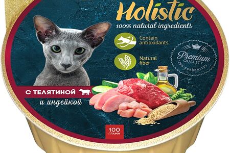 Влажный корм для кошек Зоогурман Holistic с телятиной и индейкой 100г доставка