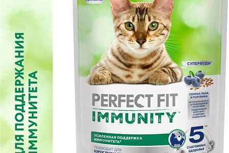 Сухой корм для кошек Perfect Fit Иммунитет говядина с добавлением семян льна и голубики 580г доставка