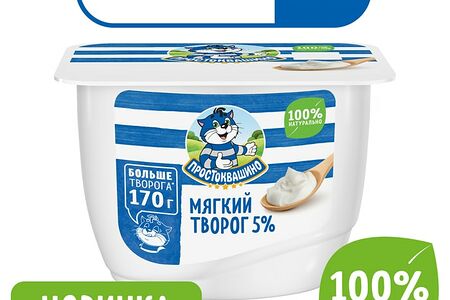 Творог Простоквашино Нежный мягкий 5% 170г – это 100% натуральный продукт, приготовленный из обезжиренного творога и свежих сливок. Обладает нежной кремовой консистенцией и приятным сливочным вкусом с умеренной кислинкой. Он отлично подойдет и для завтрака, и для перекуса на работе, и для легкого ужина. Творог непременно должен присутствовать в ежедневном рационе взрослых и детей, ведь он является источником витаминов и минералов, способствует нормализации пищеварения, положительно влияет на кости и суставы. Молочная продукция ТМ «Простоквашино» имеет несколько гарантий качества: она готовится из 100% натурального молока с ближайших ферм, проходит строгий контроль на отсутствие антибиотиков, не содержит растительных жиров.