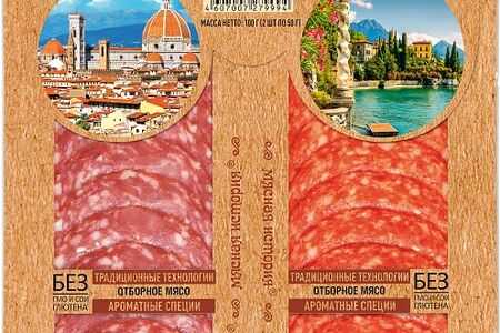 Колбаса Мясная история Дуэт вкусов Флорентийская и пепперони нарезка 2шт*50г доставка