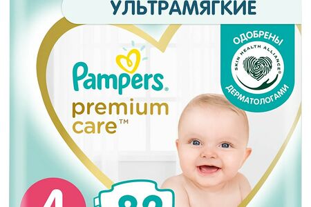 Подгузники Pampers Premium Care 4 размер / 9-14кг ультрамягкие 82шт доставка