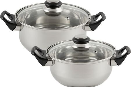 Сведения о составе: Набор посуды из 4 предметов из нержавеющей стали (2 кастрюли с крышками - 2/2,8 л; диаметры - 18/20)Срок годности в днях: 9999Страна изготовления: КитайПроизводитель: Shenzhen Goldensea Housewares Limited