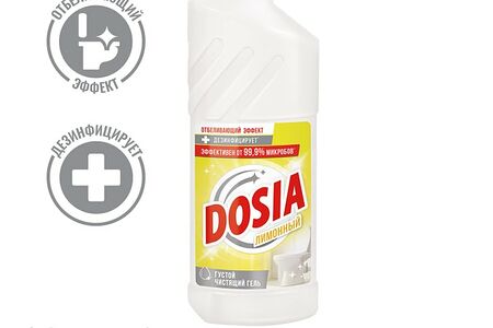 Dosia "Лимонный" — это универсальный густой чистящий гель с морским запахом для унитаза, пола и рабочих поверхностей с отбеливающим эффектом. Его формула обеспечивает дезинфицирующий эффект и визуальную чистоту унитаза. Эффективно чистит различные поверхности. Не царапает поверхность. Многофункциональный гель Dosia "Лимонный" может использоваться для очищения ванны, раковин, стоков и сливов. Эффективен до 99,9% против микробов: действует против бактерий, в том числе кишечной палочки, стафилококка и грибов рода Кандида. Подходит для чистки и дезинфекции унитаза, ванн, раковин, пола и рабочих поверхностей. Имеет отбеливающий эффект.