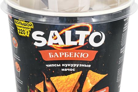 Чипсы Salto Nachos кукурузные Барбекю 220г + соус и салфетка доставка