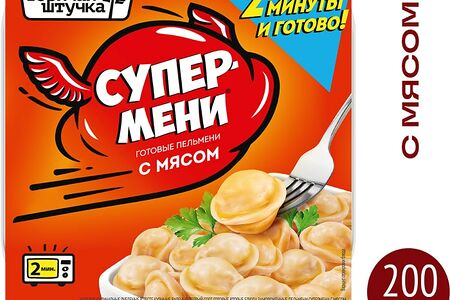 Пельмени Горячая Штучка Супермени с мясом 200г – готовые кулинарные изделия, которые вам осталось лишь разогреть. Производятся из высококачественных ингредиентов. Пельмени готовят на пару, а потом бережно замораживают по особой технологии, позволяющей сохранить их яркий вкус и сочную текстуру. Способ разогрева: снимите пленку, залейте «Супермени» кипятком, поместите в СВЧ-печь на 2 минуты. Это аппетитное блюдо прекрасно подойдет для быстрого обеда или ужина, а также избавит вас от необходимости долго стоять у плиты. «Горячая штучка» – это инновационный бренд, который не боится экспериментировать, что позволяет ему постоянно двигаться вперед и совершенствовать самые обычные продукты.