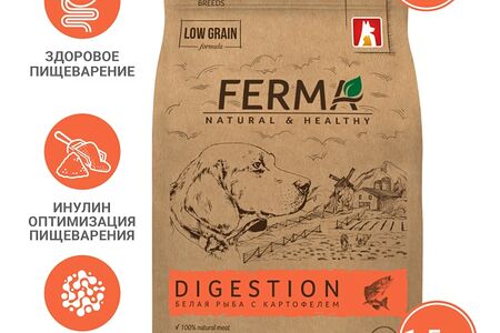 Сухой корм для собак Ferma Digestion для мелких и средних пород Белая рыба с картофелем 1.5кг доставка
