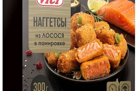 Сведения о составе: Лосось атлантический (Salmo salar) филе-кусочки; мука пшеничная; вода питьевая; масло соевое; загуститель: Е 1404; соль; специи и экстракт специй; крахмал тапиоковый; дрожжи хлебопекарные; разрыхлитель: гидрокарбонат аммония. Возможно наличие следов молока, горчицы и продуктов из нихПищевая ценность: 251,16.1,14.7,13.5Условия хранения: -18,-18Срок годности в днях: 730Страна изготовления: РоссияСведения об упаковке: Картонная коробкаПроизводитель: Вичюнай Русь