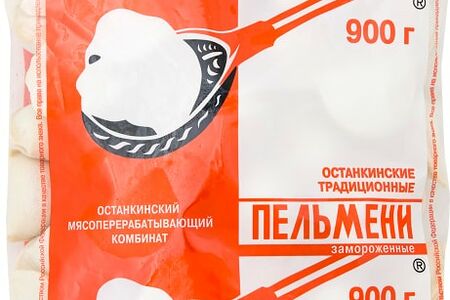 Пельмени Останкино Традиционные 900г - это замороженный полуфабрикат из классического пресного теста с мясной начинкой из свинины, говядины, лука и специй. Чтобы приготовить сытный обед или ужин на скорую руку, засыпьте в кипящую подсоленную воду порцию пельменей, варите в течение 3-6 минут после всплытия и подавайте со сливочным маслом, сметаной или другими соусами, посыпав сверху свежей зеленью. Продукт не требует предварительного размораживания. Продукция бренда "Останкино" производится на новейшем оборудовании из Германии и Австрии, в качестве сырья используется охлажденное мясо и натуральные ингредиенты.